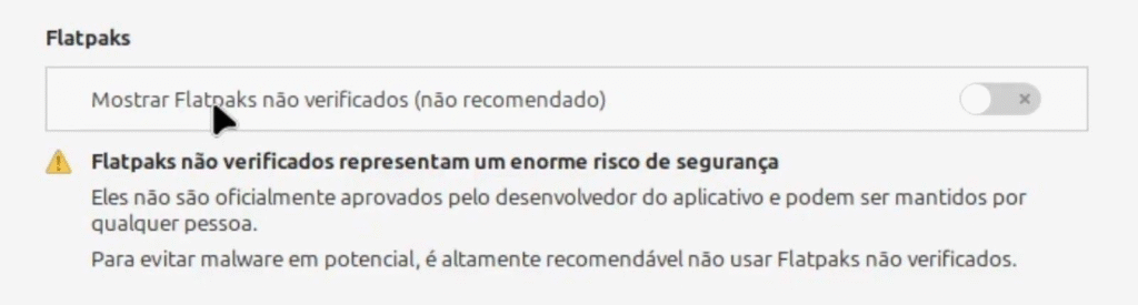 Sobre a mensagem que fala sobre risco de segurança de aplicativos em Flatpak: