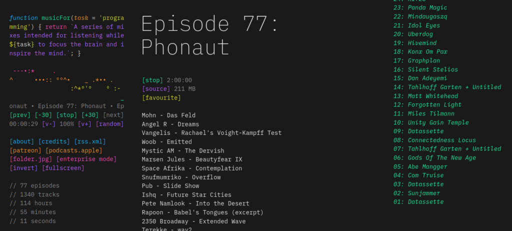Basta acessar musicforprogramming.net, escolher um episódio (o “Ep. 01” é um ótimo começo) e dar o play. Deixe a aba aberta, coloque seu fone de ouvido e sinta a produtividade aumentar.